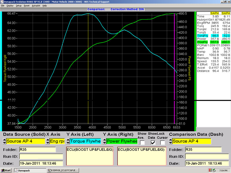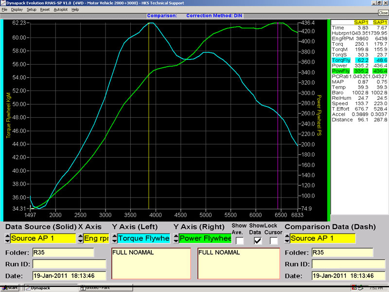 →右のグラフはHKS GT600装着のパワーチェックです。 |